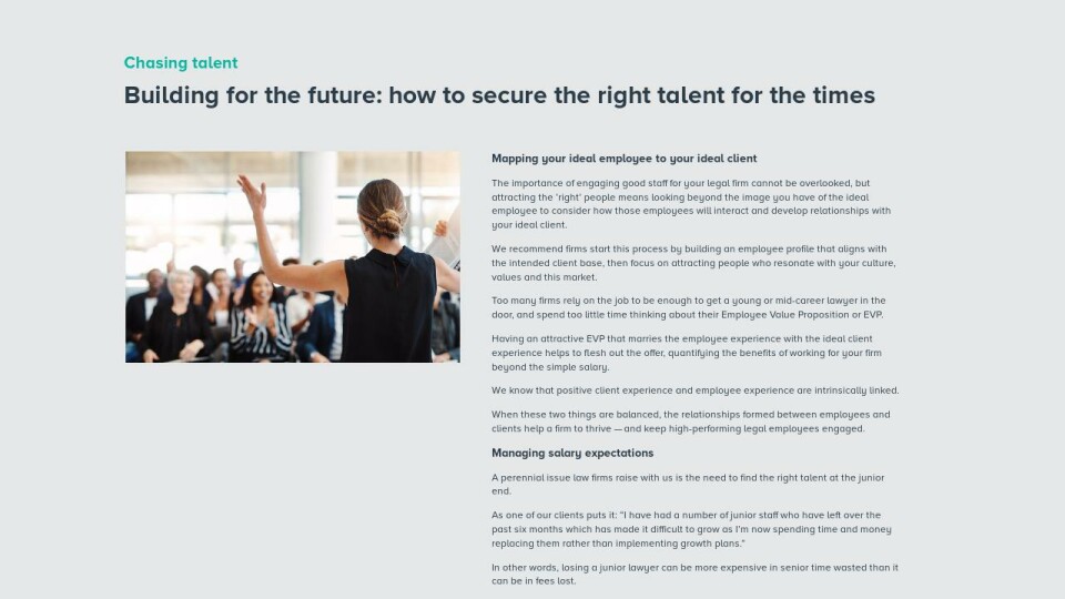A perennial issue law firms raise with us is the need to find the right talent at the junior end.