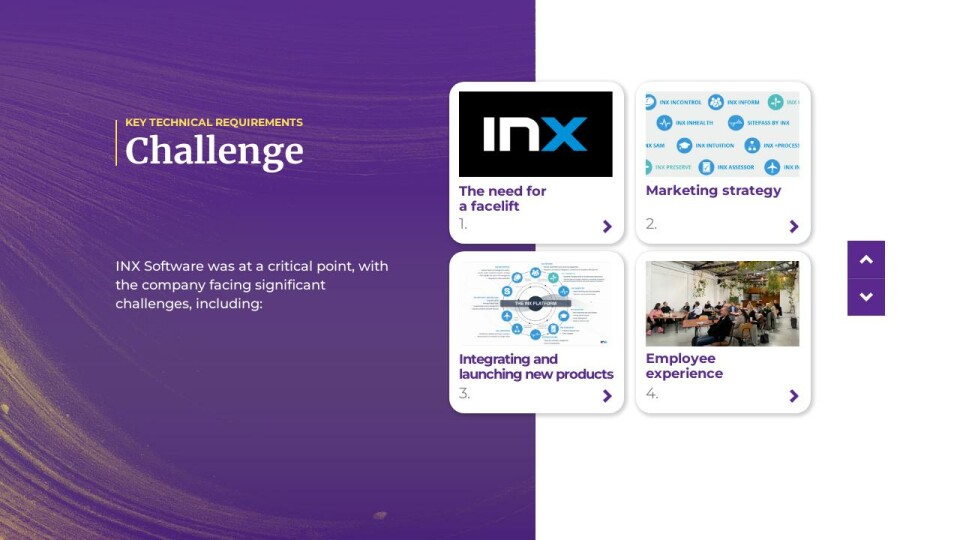INX has a suite of 10 products, multiple enhancements and several product services. There was a lack of clarity between these, with a growing tension between product branding and master branding. New investors were driving strong growth targets, but the lack of sales enablers and clear, competitive branding was limiting cut-through and conversions.